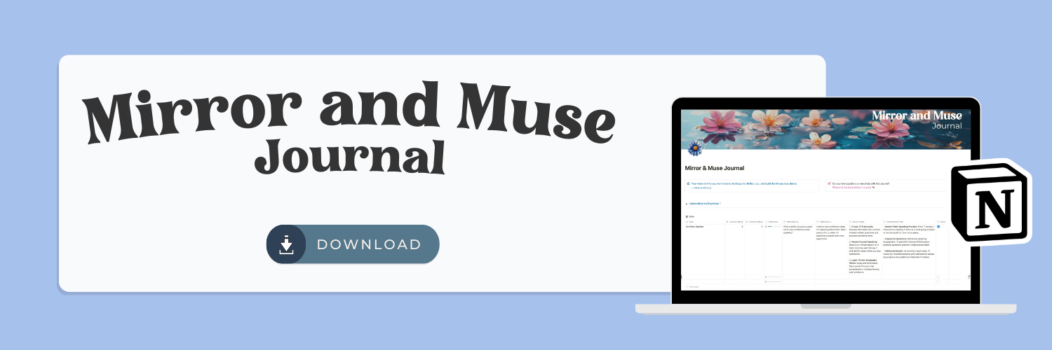 The Mirror & Muse Journal is a transformative tool designed to help you craft the personal brand you aspire to embody. It guides you through a reflective journey to assess and elevate the qualities, traits, and personas that resonate with your brand identity.